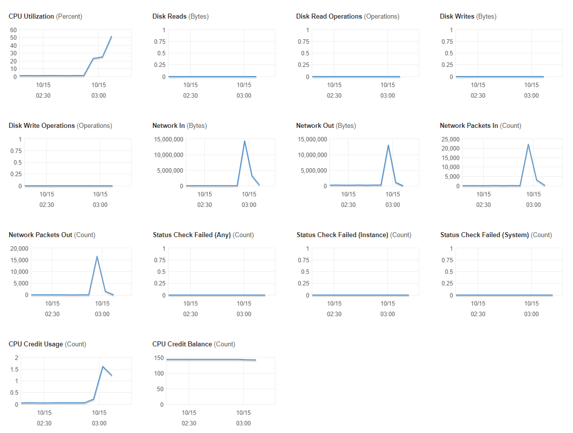 I couldn't find anything suggesting a cause for the fault in the system logs following a restart, so the only indication of any problem was the CloudWatch metrics showing elevated CPU: