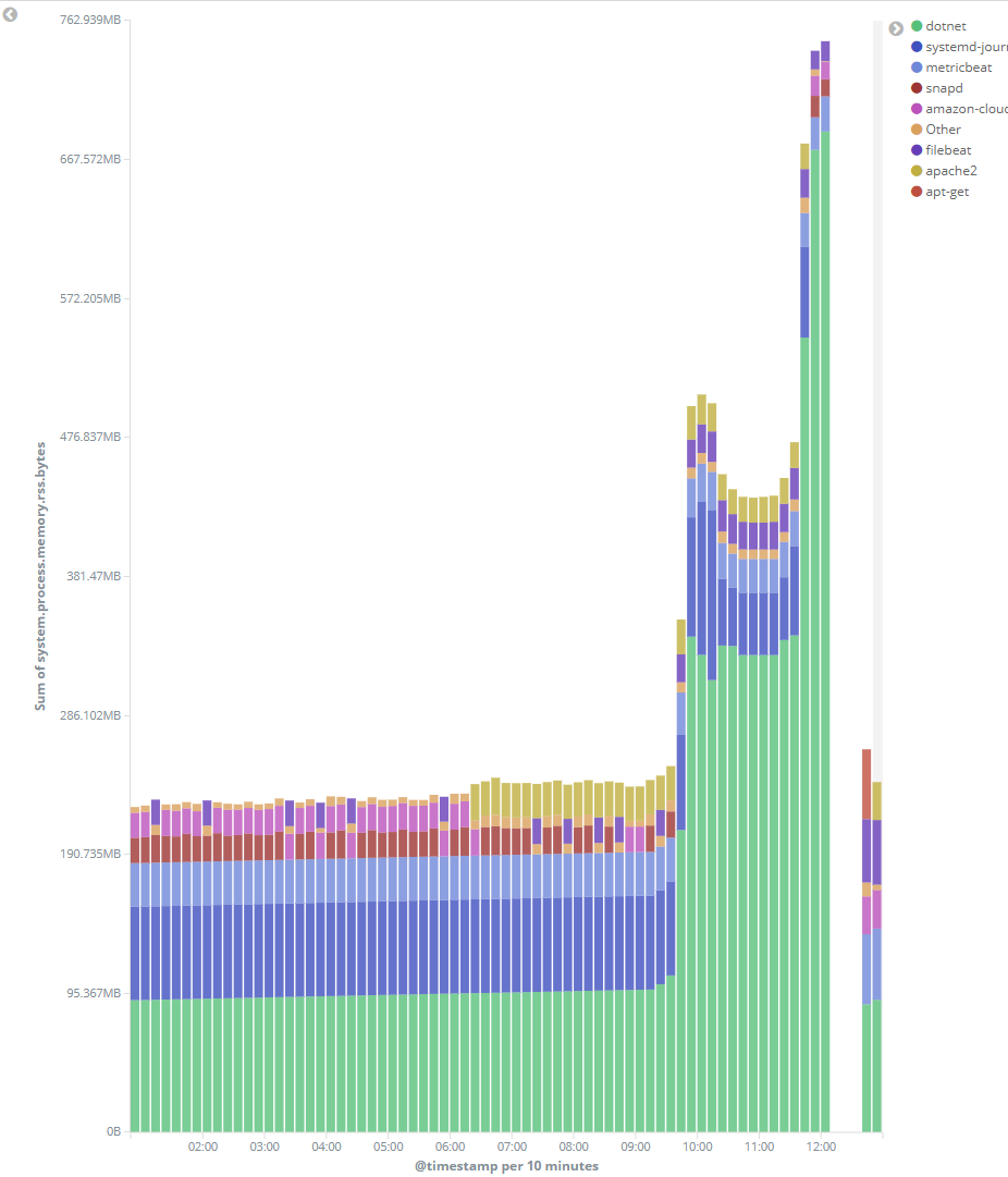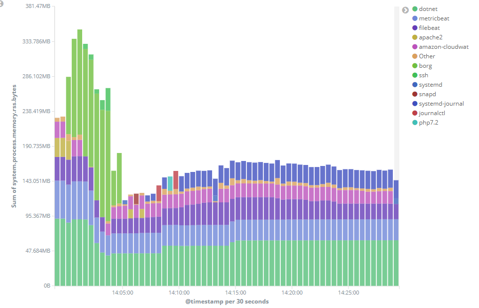 Determining which particular process is responsible for the memory pressure is a matter of configuring an appropriate Kibana visualisation: